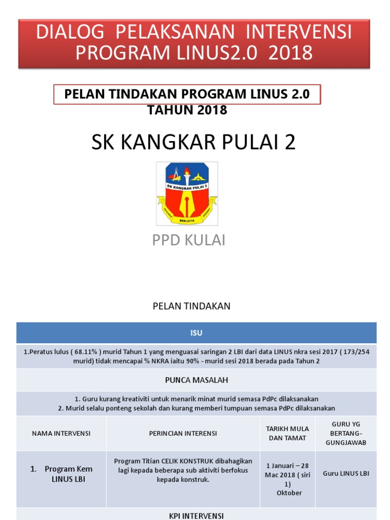 Alif sofia pendaftaran darjah 1 bagi sesi 2018 semakin facebook. Tarikh pelaksanaan saringan linus 2.0 tahun 2018 perkara saringan 1 saringan 2 saringan berperingkat mengikut sekolah. Sila muat turun tapak verifikasi saringan 2 nkra linus2.0 tahun 2018 untuk tindakan selanjutnya. Instrumen lisan saringan 1 2018. Bengkel pentadbiran saringan 1 lisan linus2.0 bagi literasi bahasa melayu, literasi bahasa inggeris dan numerasi pejabat pendidikan daerah perak tengah 2017.