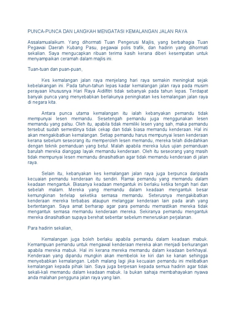 Mengubah sikap pemandu yang kurang berhemah. Contoh karangan bahagian pendahuluan (nordiana nordin 5 mpv). Oleh kerana masa tidak mengizinkan, saya sudah sudahi syarahan saya dengan ucapan terima kasih. Kemalangan jalan raya kemalangan jalan raya yang berlaku di negara ini meningkat daris e m a s a k e semasa. Langkah mengurangkan kemalangan jalan raya karangan pt3 goodtextbrokers s blog.