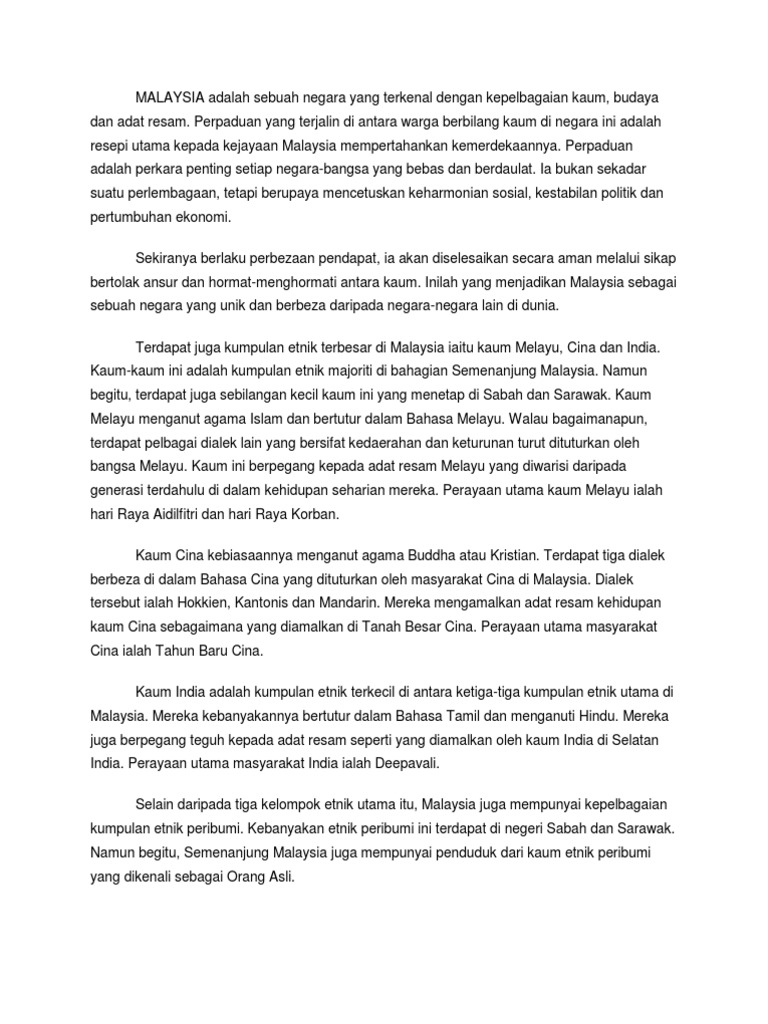 Maka, saya yakin bahawa kepelbagaian makanan sudah menjadi pemangkin kepada perpaduan di malaysia kerana rakyat sanggup membeli makanan yang diminati daripada penjual yang berbilang kaum. Download lagu kepelbagaian kaum di malaysia mp3 dan mp4 video dengan kualitas terbaik. Kepelbagaian kaum dan budaya di malaysia merupakan aspek yang penting untuk mewujudkan perpaduan. Selain itu, malaysia juga merupakan tanah air kepada sebanyak kira kira 80 kaum etnik. Di dalam perbincangan ini saya akan membawa anda sekelian melalui serambi gastronomi pelbagai kaum di malaysia: